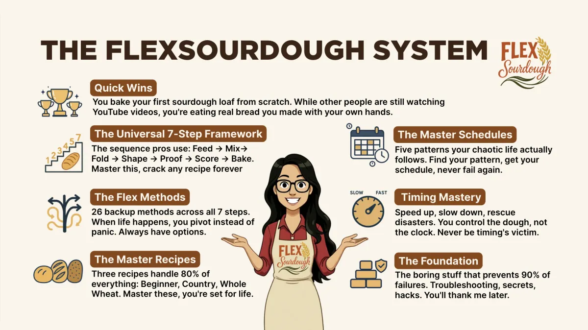 It's the only sourdough education system that gives you MULTIPLE methods for every single step - so when life gets in the way, you have options instead of failures.
